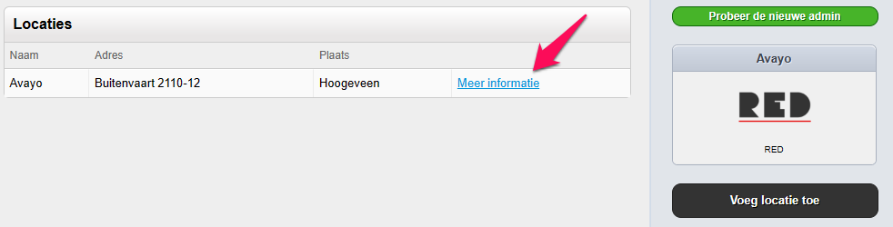 Klik op ‘Meer informatie’ achter de betreffende locatie.