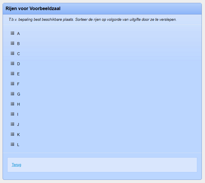 Met de rij prioriteit kun je aangeven welke plaatsen de best beschikbare plaatsen zijn. Als je rechts van de rijen op het symbool gaat staan, dan kun je de rijen in volgorde verslepen.