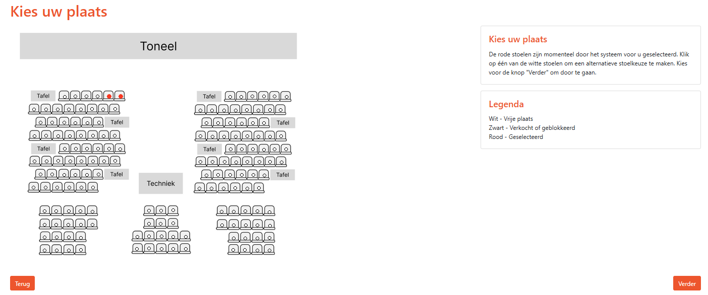 Bekijk het geheel zoals de klant het ook ziet om te controleren of het zaalplan goed in het systeem staat: Bezoek als klant jouw ticketshop voor het evenement en maak een testbestelling. Kijk hiervoor in de handleiding Testbestelling plaatsen.