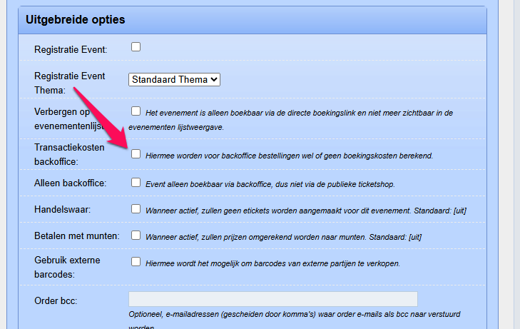 Zorg dat het vinkje achter ‘Transactiekosten backoffice’ uit staat.
